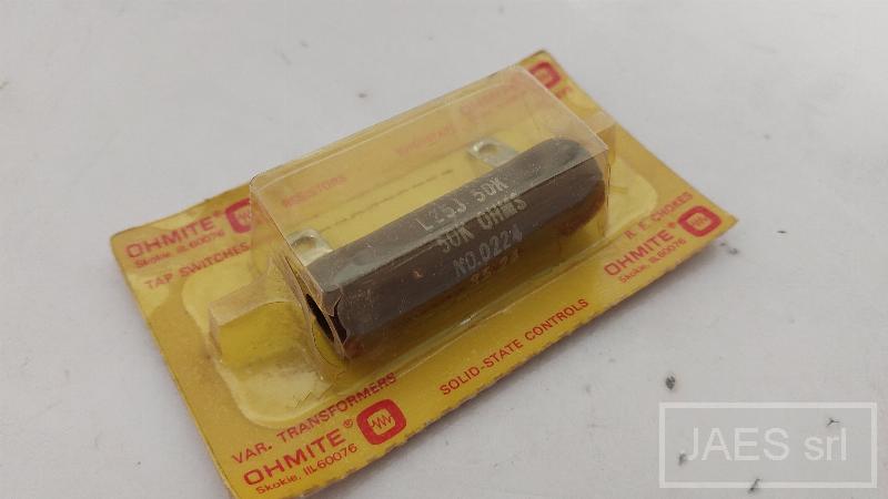 RESISTOR RESISTOR TYPE: FIXED RESISTANCE: 25W TOLERANCE: ±5% 1# AND OVER(J); ±10% UNDR POWER RATING: BASED ON 25°C FREE AIR RATING VOLTAGE RATING: 1000VAC MATERIAL: HOLLOW CORE CERAMIC COMPLEMENTARY INFO: 270 TYPE FIXED RESISTORS TECHNICAL DOCUMENTS: L25J50K BLEEDER RESISTOR.PDF MANUFACTURER 1: OHMITE MANUF. PART NO. 1: L25J50K OR EQUIVALENT IF APPROVED BY PURCHASING IN WRITTEN FORM IN ADVANCE