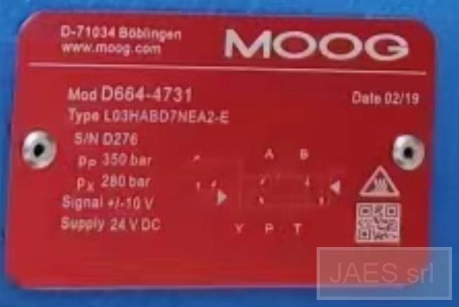 MOOG SERVO VALVE MANUFACTURER CODE H40FOGM4VBQ MANUFACTURER MOOG MODEL TYPE G631-3704B PLATE MOUNT POWER SUPPLY 24 VDC CONSTRUCTION SERIES S/N 6555 ITEM PART NUMBER 10LBS31