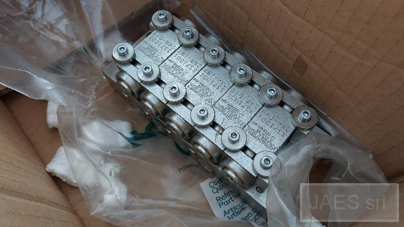 DISTRIBUTOR FOR LUBRICATION; TYPE: FOR FAT; INPUT DIAMETER: 3/8 "BSP; OUTPUT DIAMETER: 1/4" BSP; NUMBER OF OUTPUTS: 8; MAXIMUM CAPACITY: 2.3 CM3; USE: SWING LUBRICATION SYSTEM; NOTE: C = BLIND; BRAND 1: NORTEK; N-PART 1: 3218443
